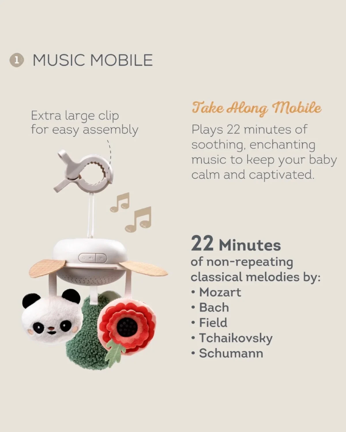 Senzorna stimulacija: Muzička vrteška sa umirujućim melodijama pomaže u razvoju sluha i deluje opuštajuće.
