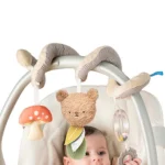 Dindolino sa šarmantnom glavom pande na vrhu, nije samo funkcionalna već i vizuelno privlačna, što je čini divnim dodatkom rutini igre. Namenjena uzrastu od 9+ meseci, postiče razvoj fine motorike i koordinacije oko-ruka. Najveći krug za slaganje je providan, a unutra ima šarene perlice koje i zveckaju, tako da doprinosi funkcionalnosti ove igračke.