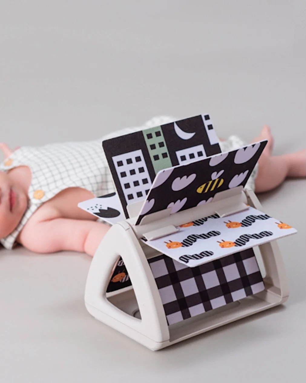 Dvostrana rotirajuća Taf Toys knjiga, za 3 razvojne faze: