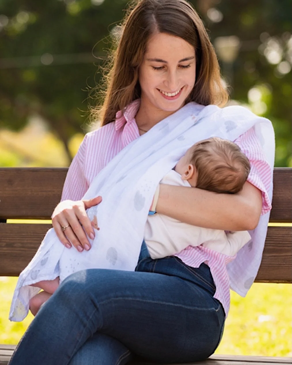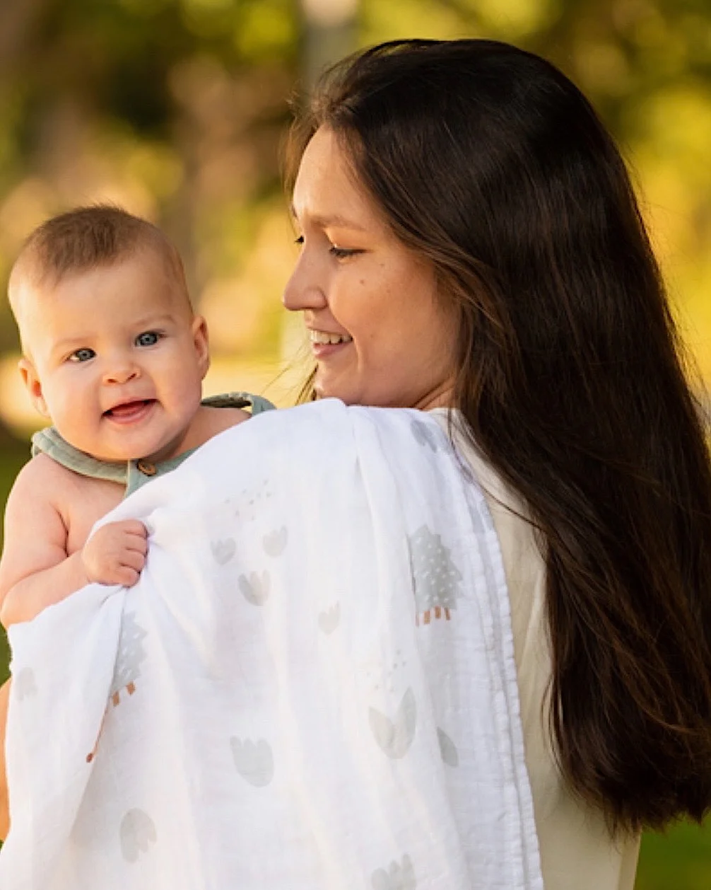 Muslin pelena: Dimenzija 70×70 cm. Napravljeno od 30% bambusa i 70% pamuka. Možeš ga koristiti kao prekrivač ili kao zaštitu od sunca i vetra.