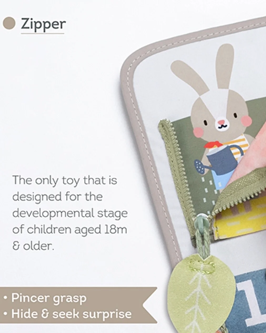 Rajsferšlus: za razvoj fine motorike i koordinacije oko-ruka, otkopčavanjem i zakopčavanjem rajsferšlusa.