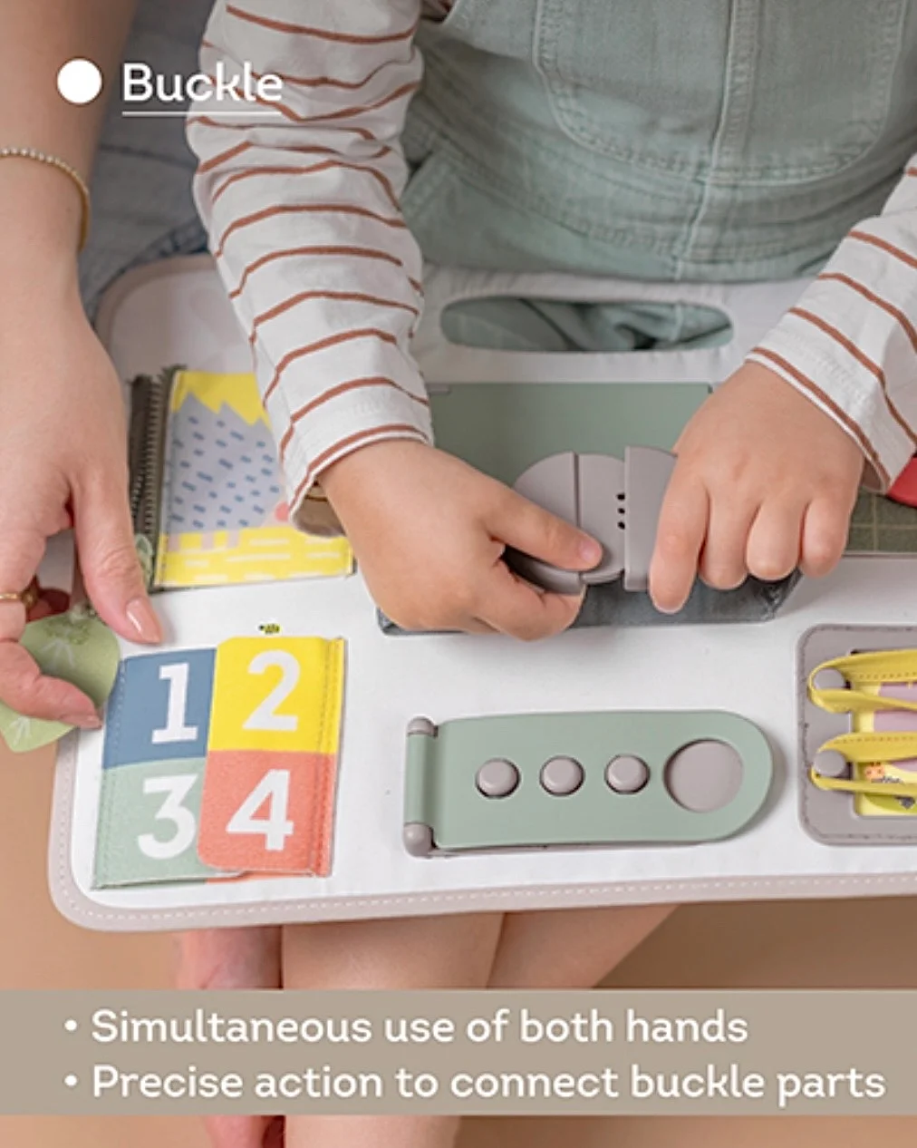 Kaiš sa kopčom: Omogućava deci da razviju svoje fine motoričke sposobnosti i snagu ruku dok povlače i otkopčavaju kaiš.