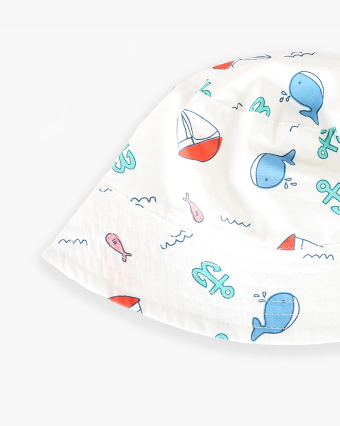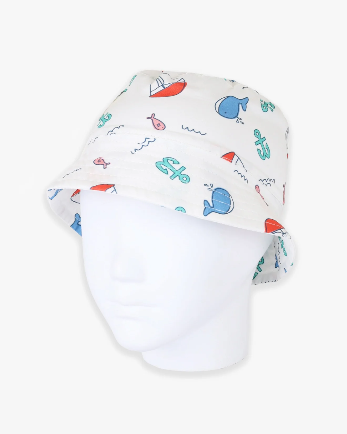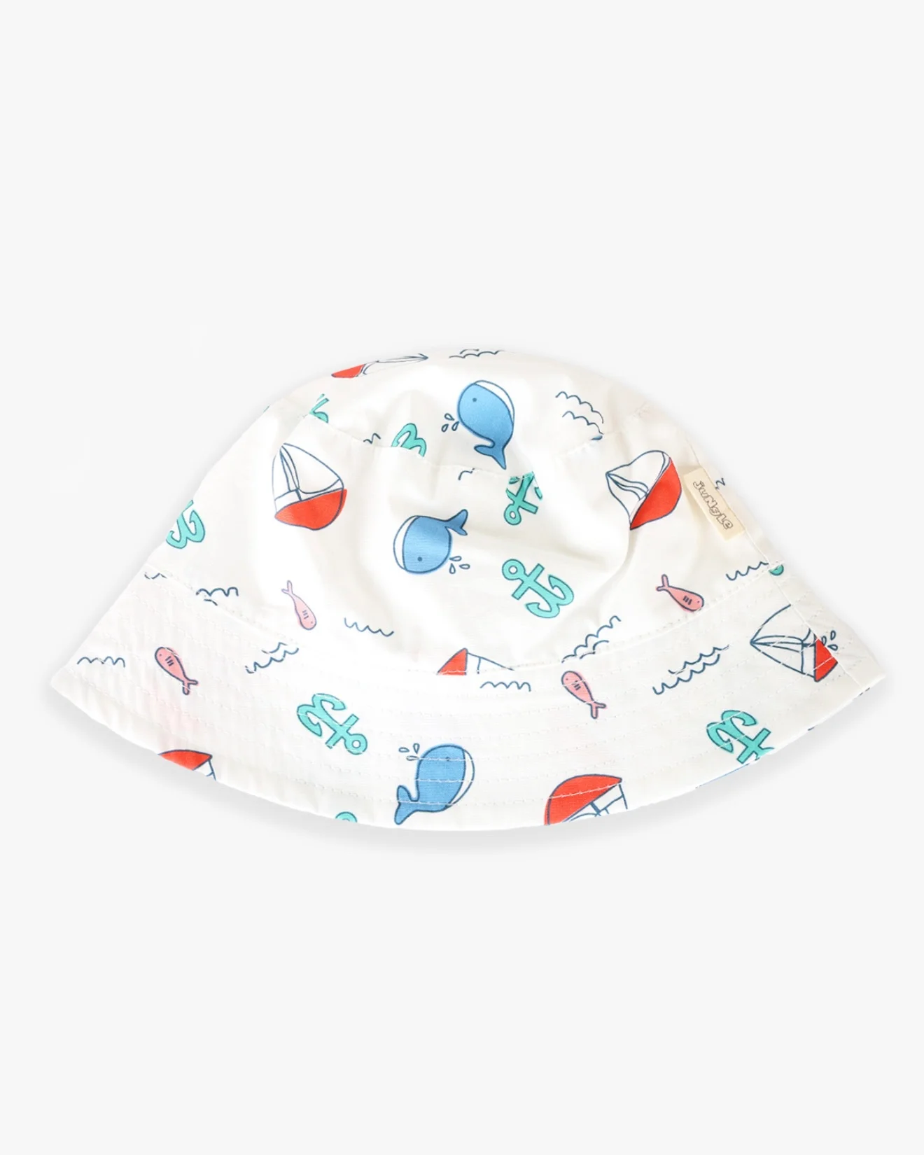 Jungle šeširić za bebe od 100% pamuka, u beloj boji i sa morskim šarama, tu je za sve tople dane i zaštitu od štetnih sunčevih zraka.