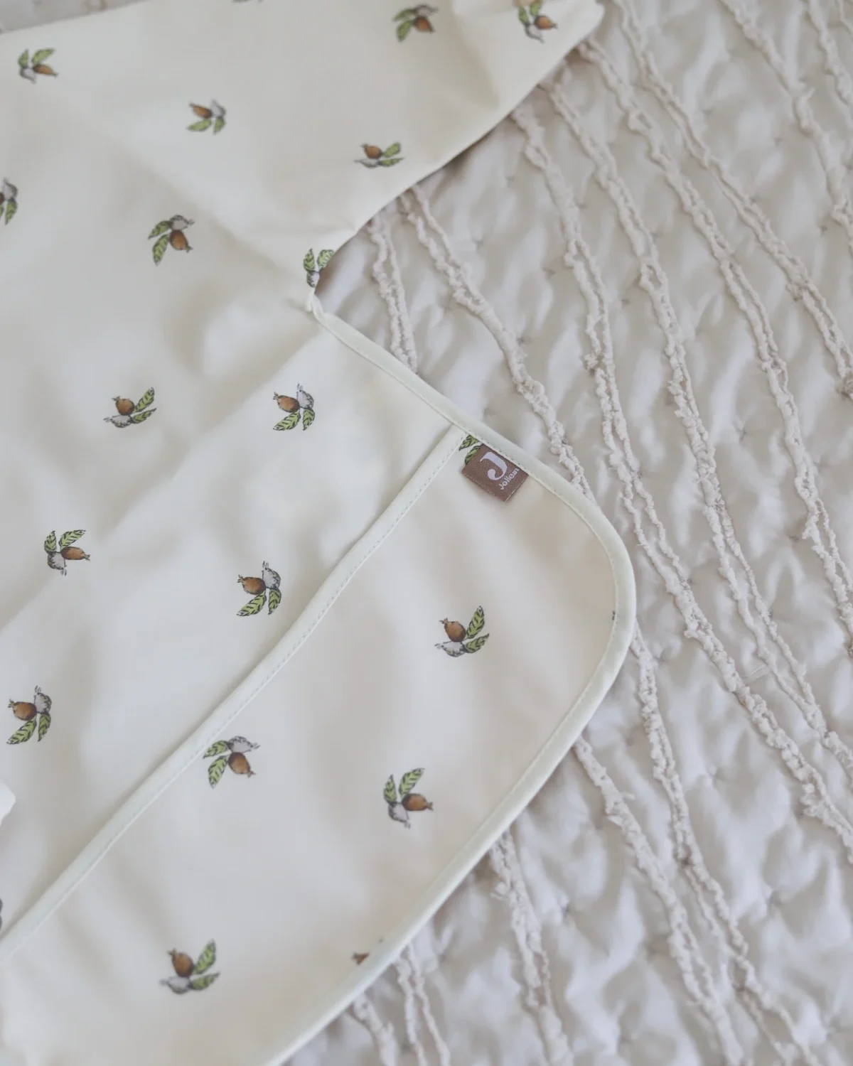 Jollein portikla sa rukavima, u najlepšem Rosehip dezenu, idealna je za period učenja samostalnom hranjenju.