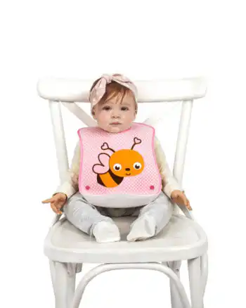 Izuzetno praktična i u periodu učenja samostalnom hranjenju, rukicama ili priborom. Znatno smanjuje vreme čišćenja nakon obroka.