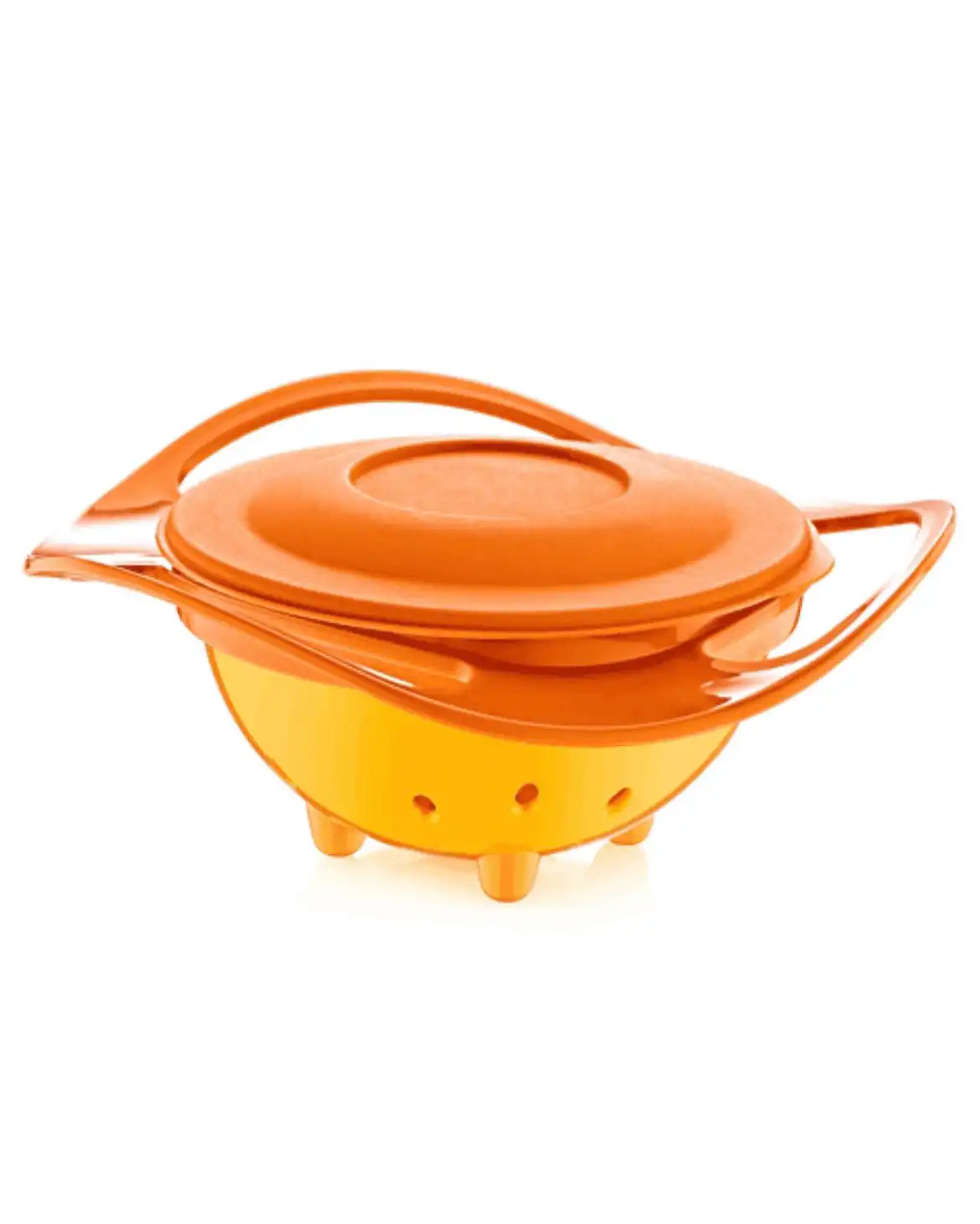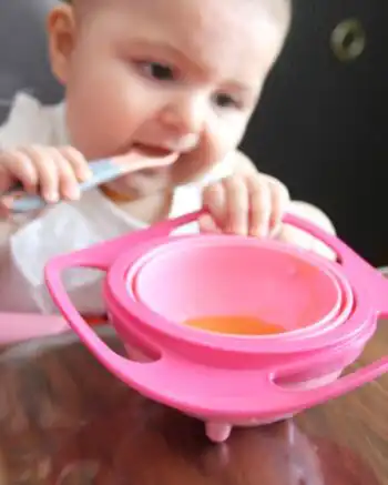 Unutrašnji deo posude se rotira za 360 stepeni i tako sprečava prosipanje hrane iako je dete okrene u stranu ili potpuno naopako.
