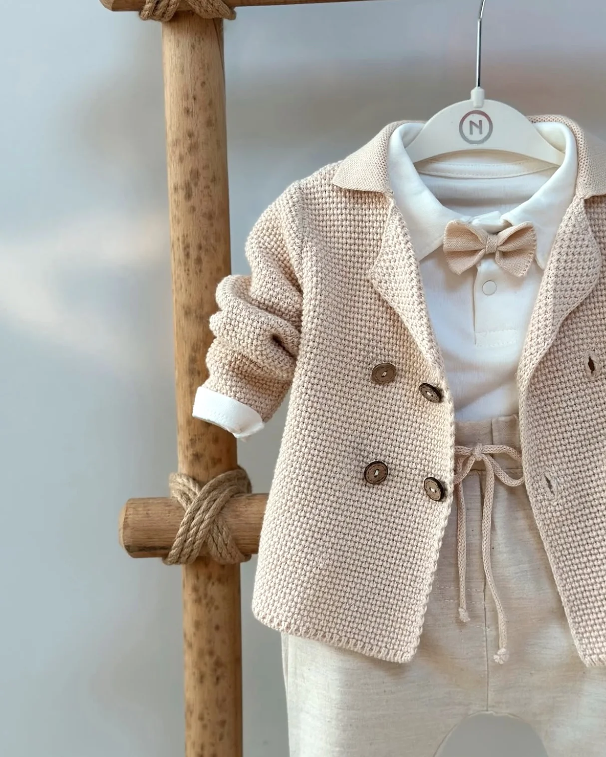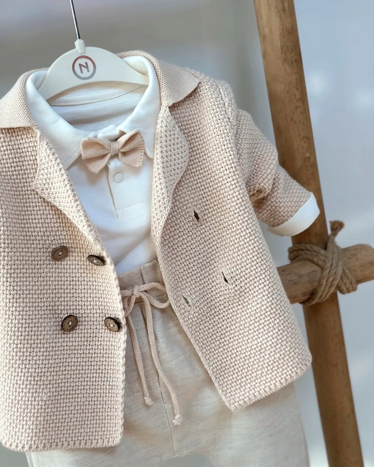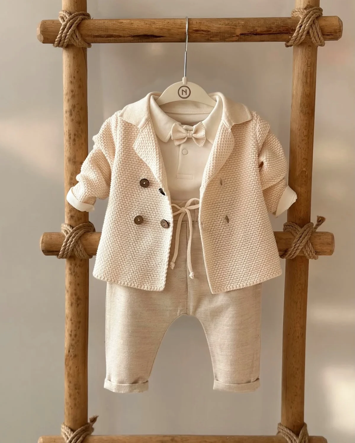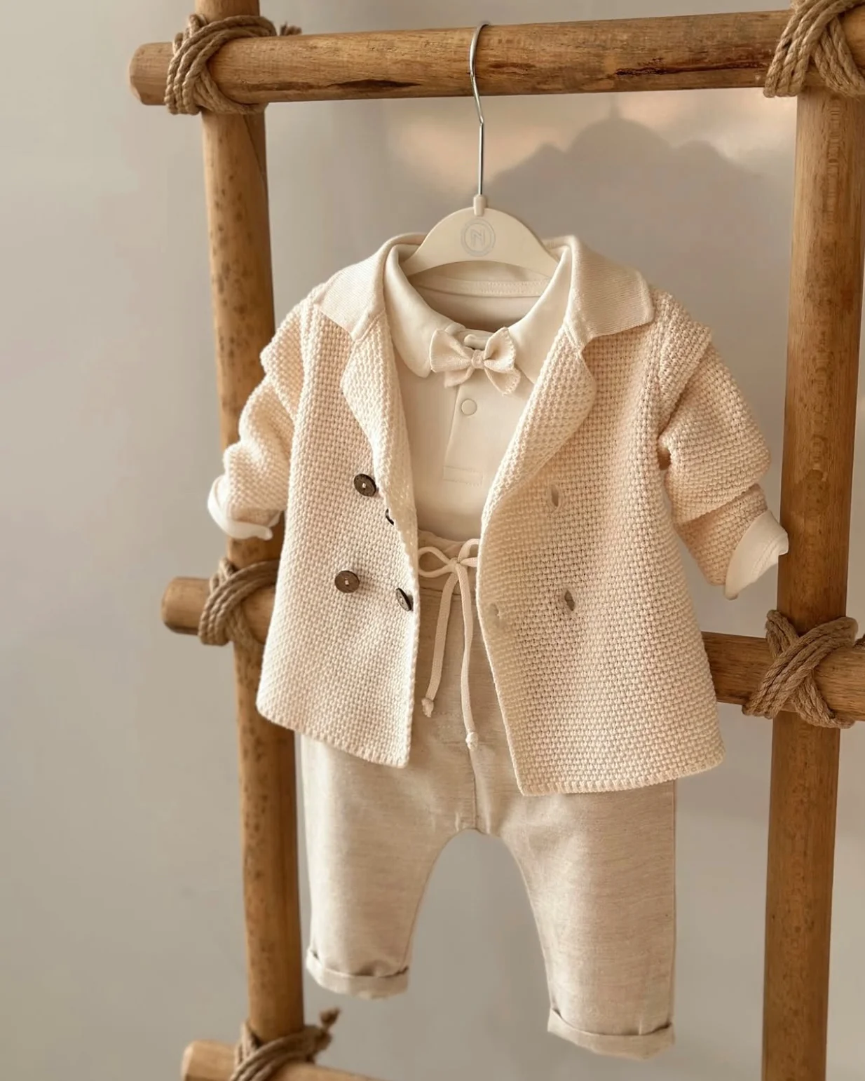 NipperLand 3/1 komplet odelo za bebe dečake, u bež boji koja je uklopiva uz sve, idealan je izbor za svaku posebnu prilku.