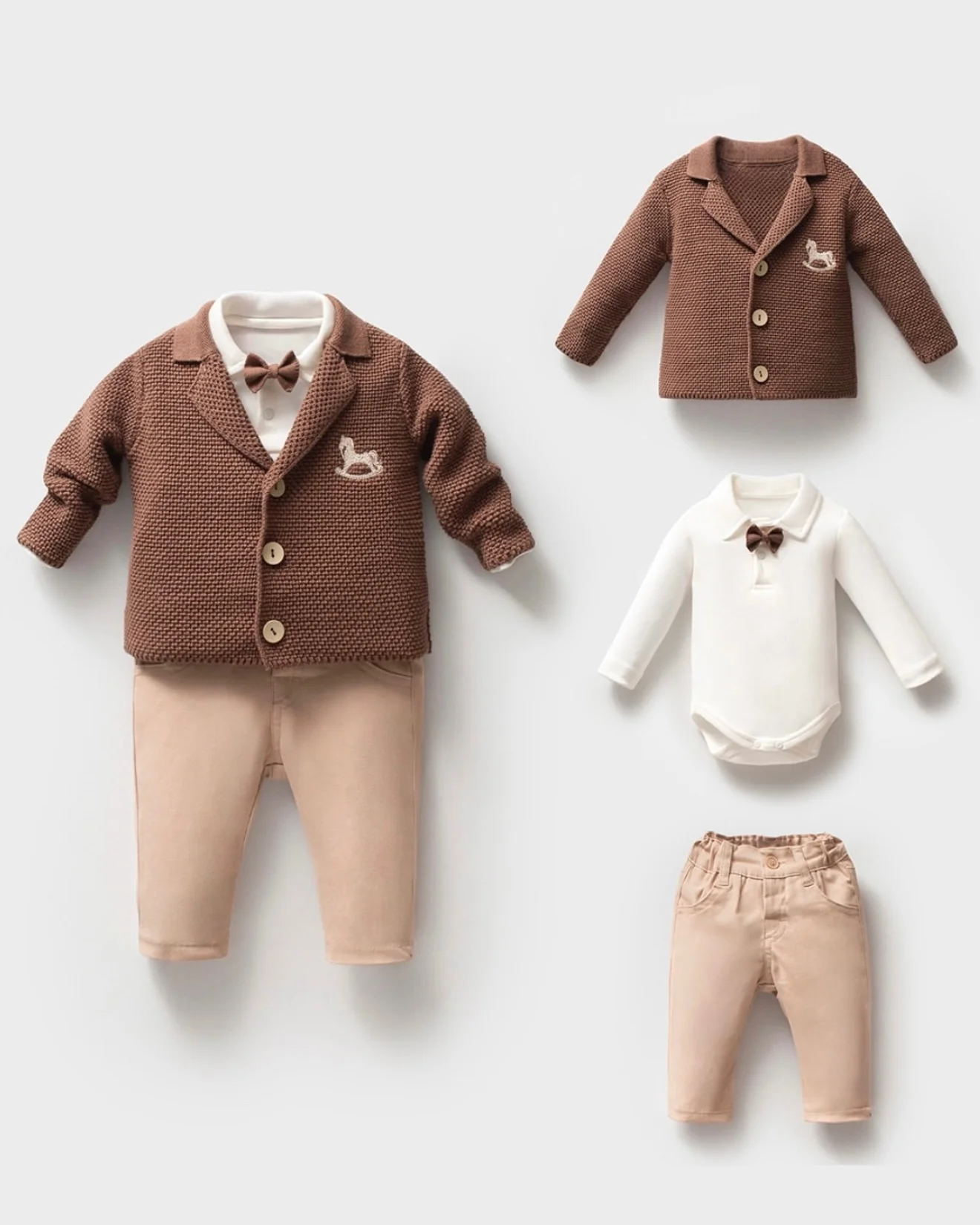 NipperLand 3/1 komplet odelo za bebe dečake, u bež/braon kombinaciji koja je uklopiva uz sve, idealan je izbor za svaku posebnu prilku.