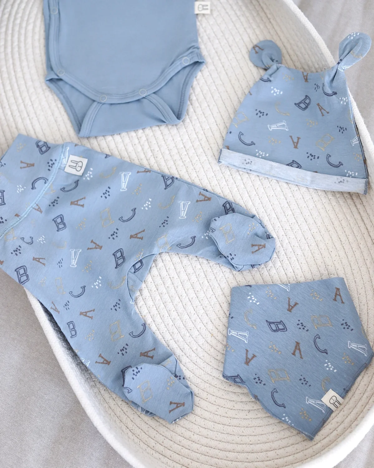 Ovaj 4/1 set možeš birati za izlazak iz porodilišta i prvi period sa bebom. Sva četiri komada izrađena su od rastegljivog pamuka,i vrlo su laki za oblačenje. Dolazi u kutiji i sadrži: