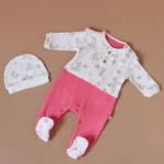 Elegantna AnnaBabba pamučna štramplica i kapica za bebe dečake, u bež boji.
