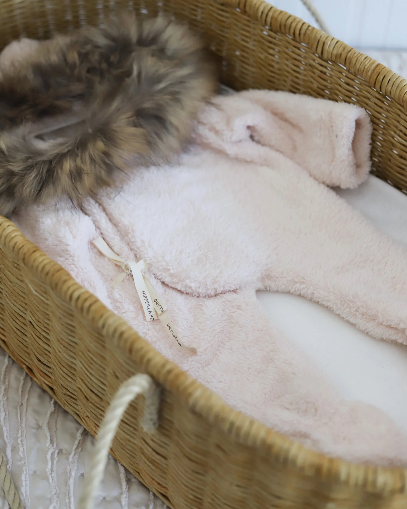 Omiljeni tedi skafander za bebe, deo je i nove NipperLand kolekcije, sa dodatkom krzna na kapuljači i postavom od 100% pamuka! U najsvetlijoj roze nijansi.