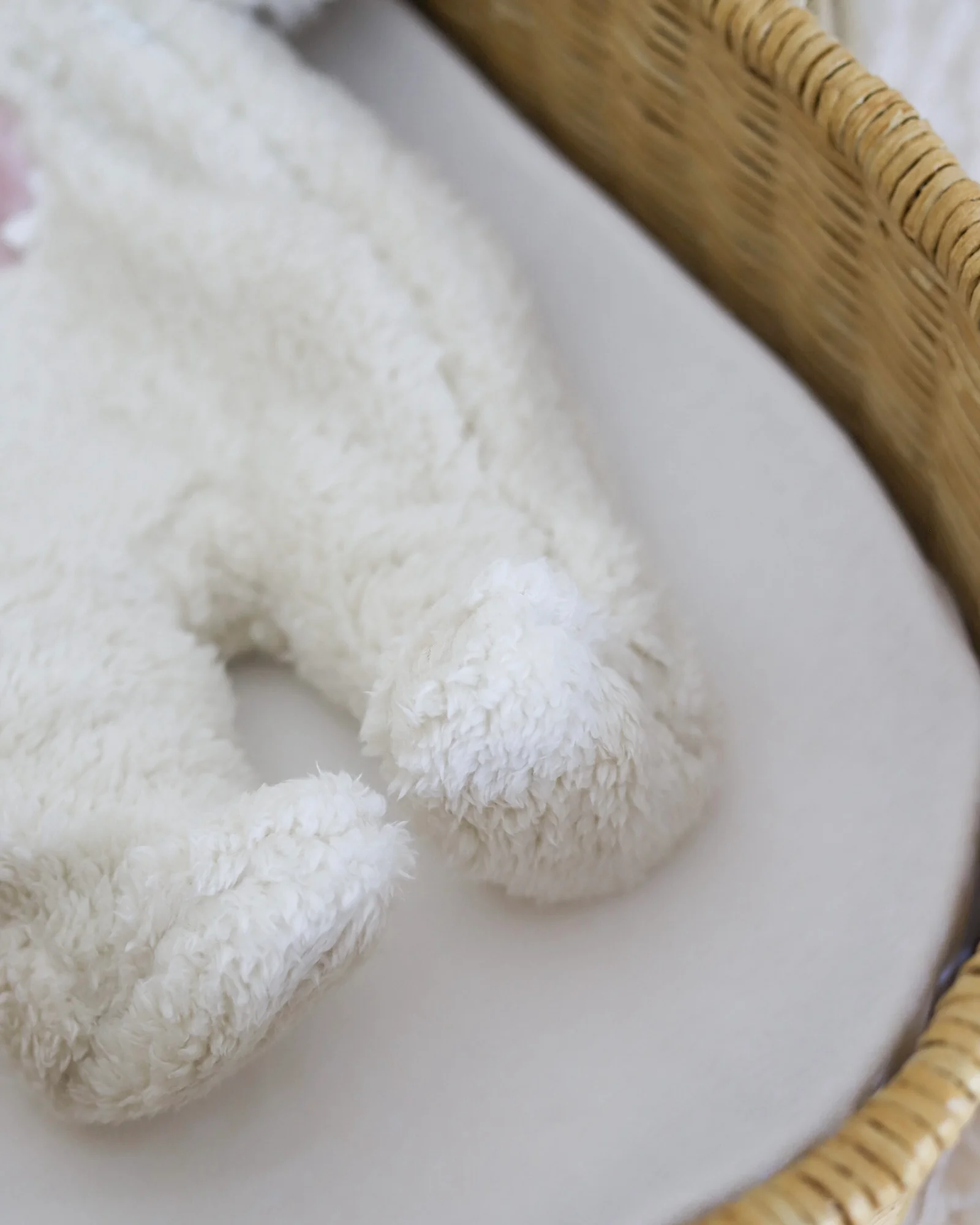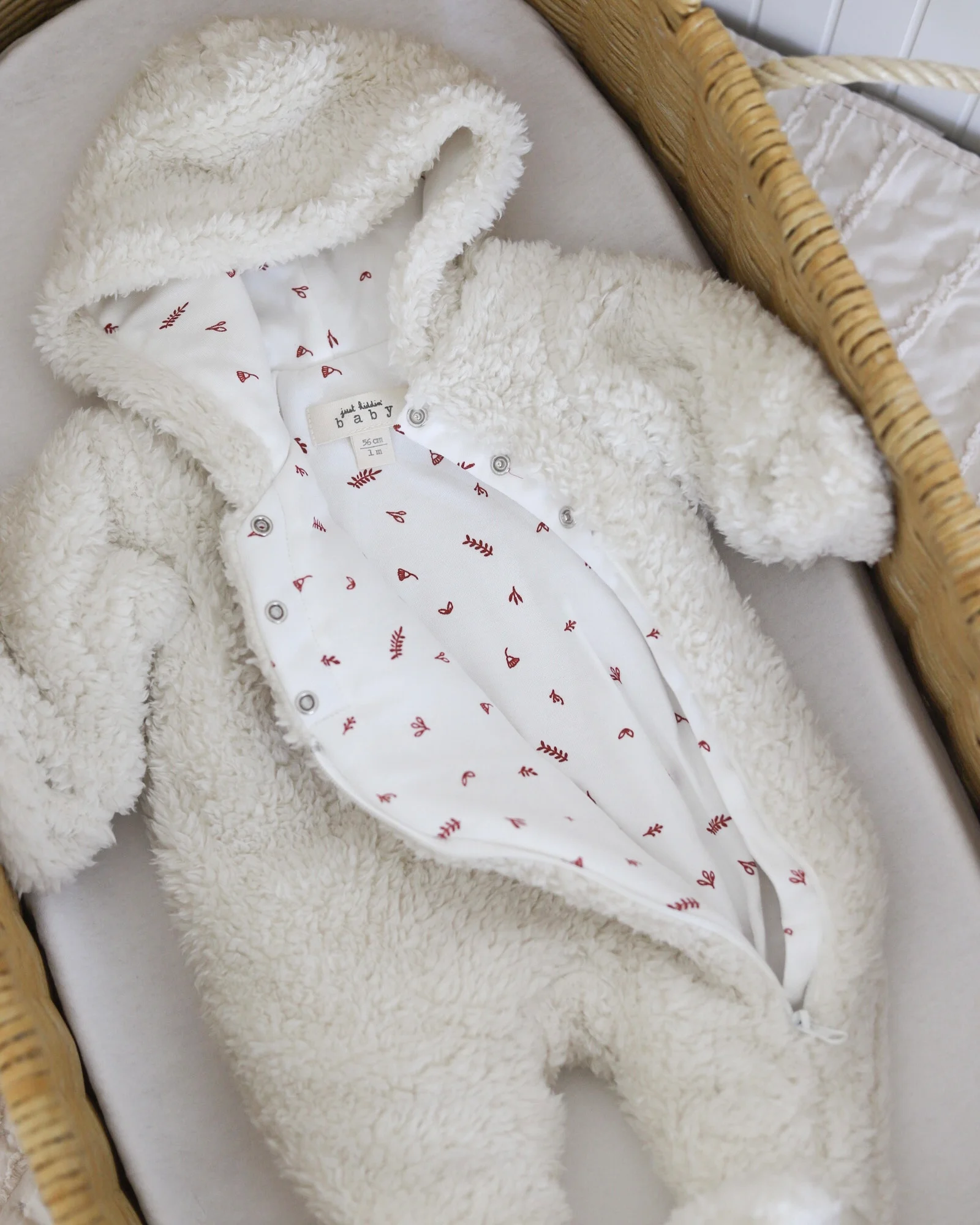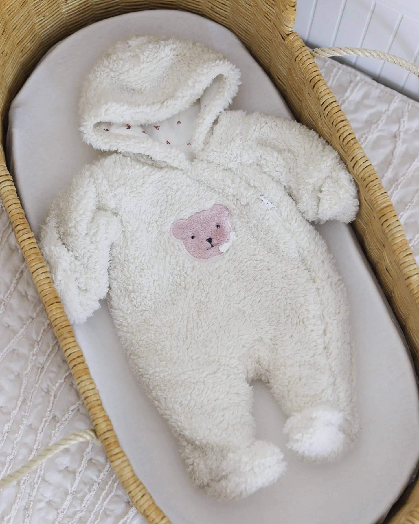 Mekani beli skafander sa roze medom, iz nove Just Kiddin kolekcije, sjajan je za sve zimske dane!