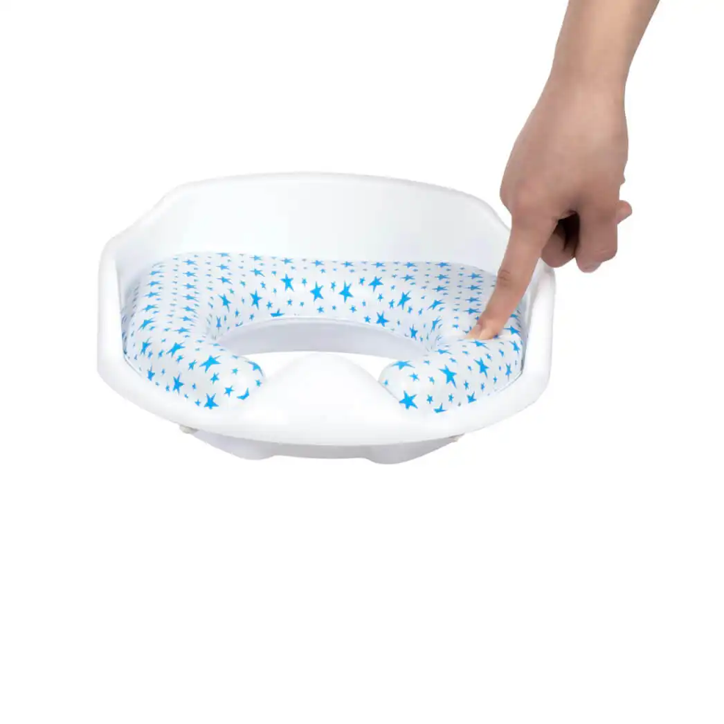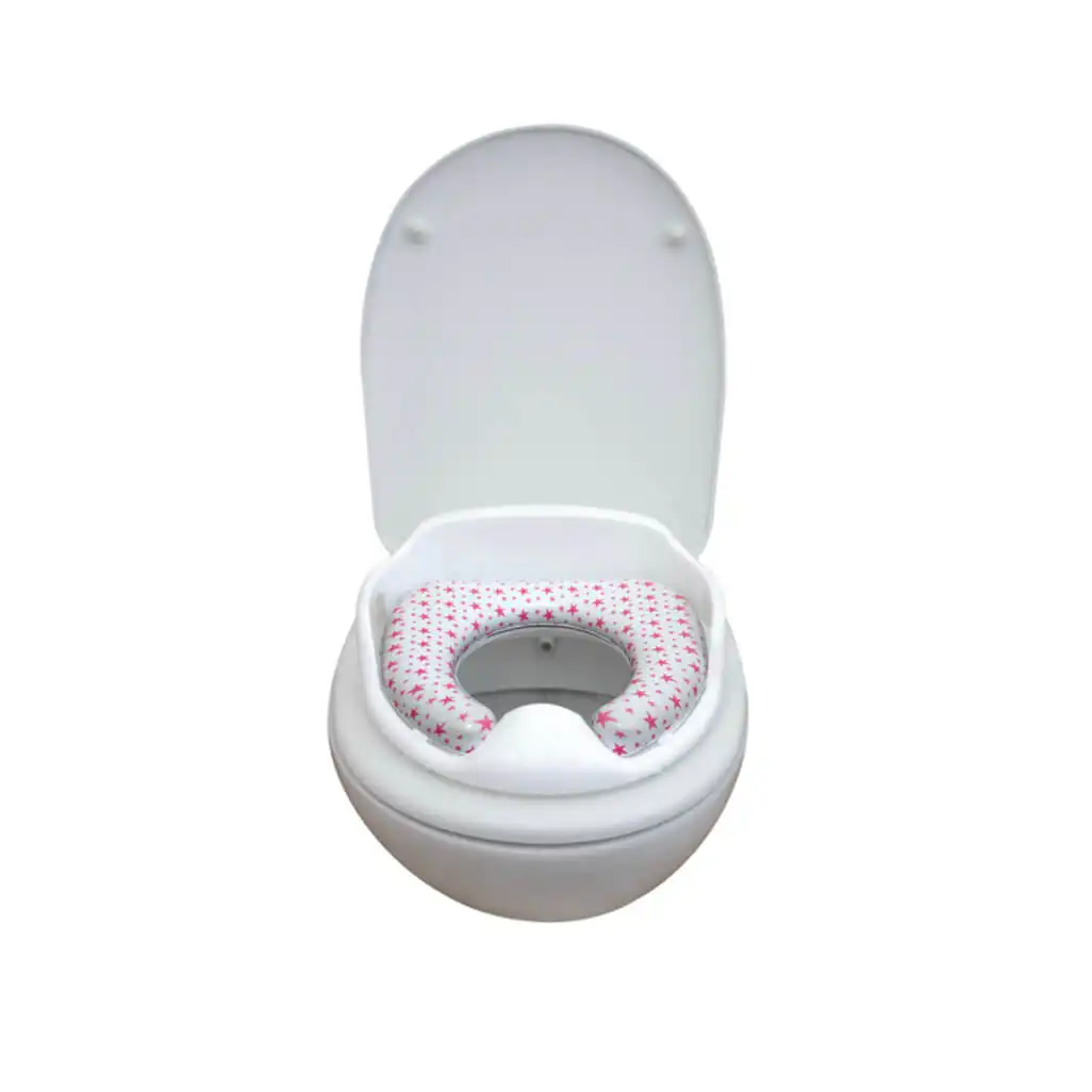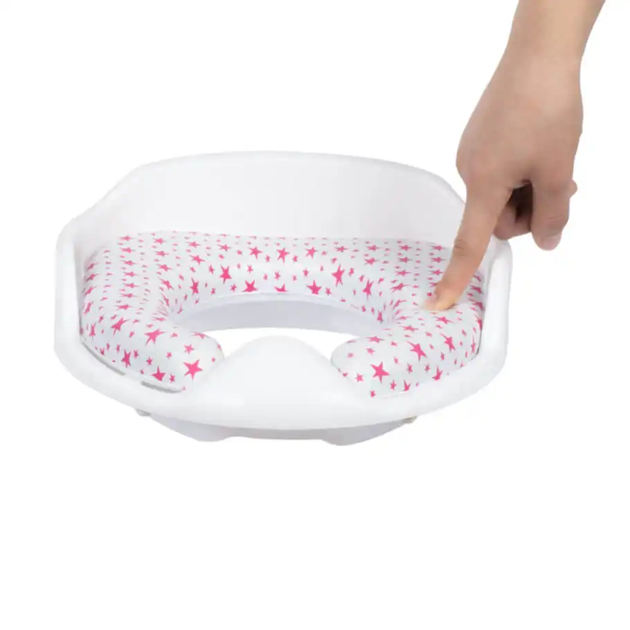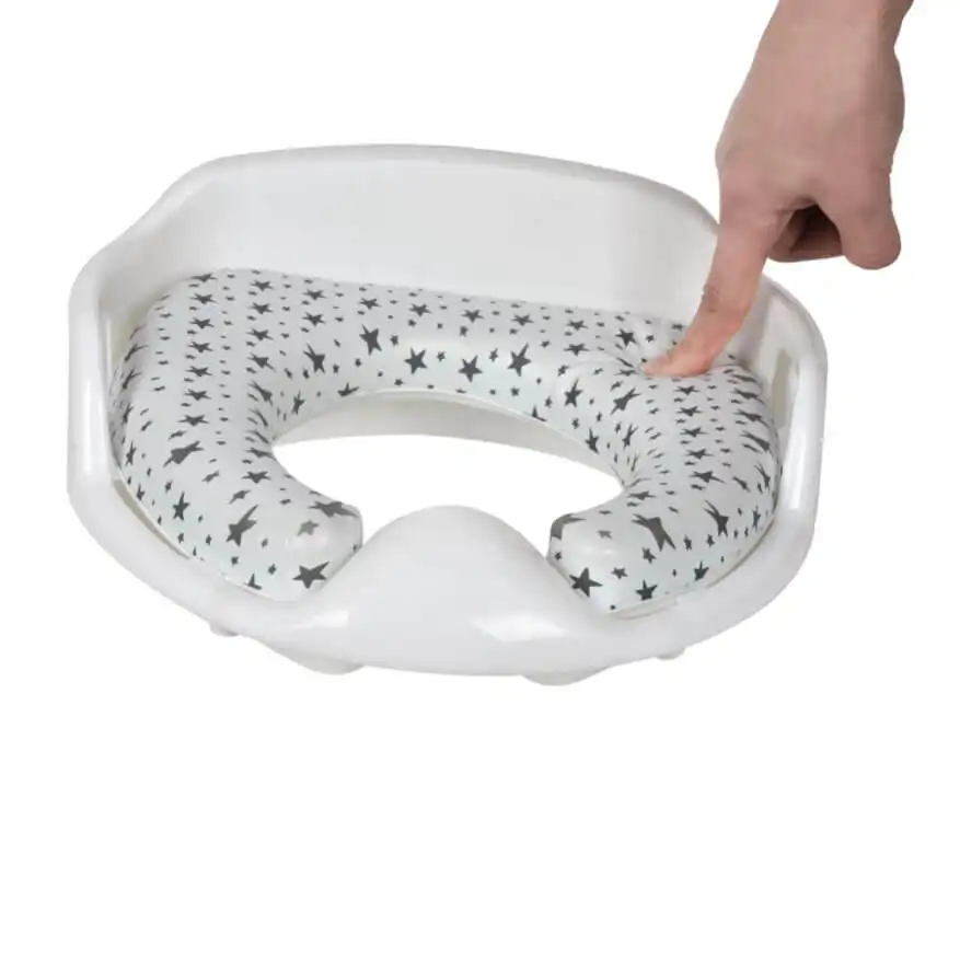Anatomski adapter za WC sa naslonom. Dostupan u 3 varijante: sa sivim, roze i plavim zvezdicama.