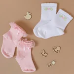 Dvopak čarapice za bebe devojčice, firme BabyDola. Set je dostupan u svetlo roze, tamno roze, sivoj i braon kombinaciji.