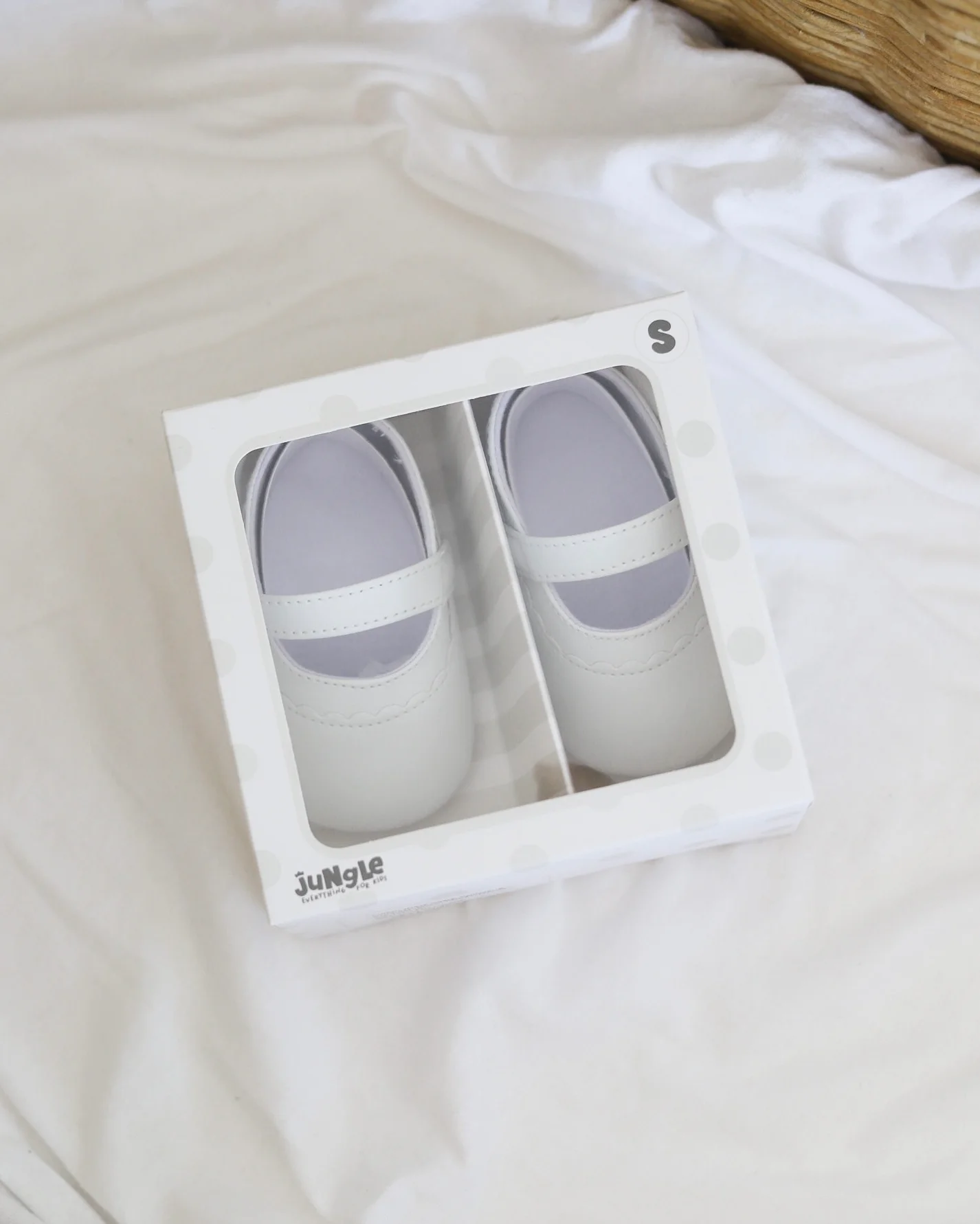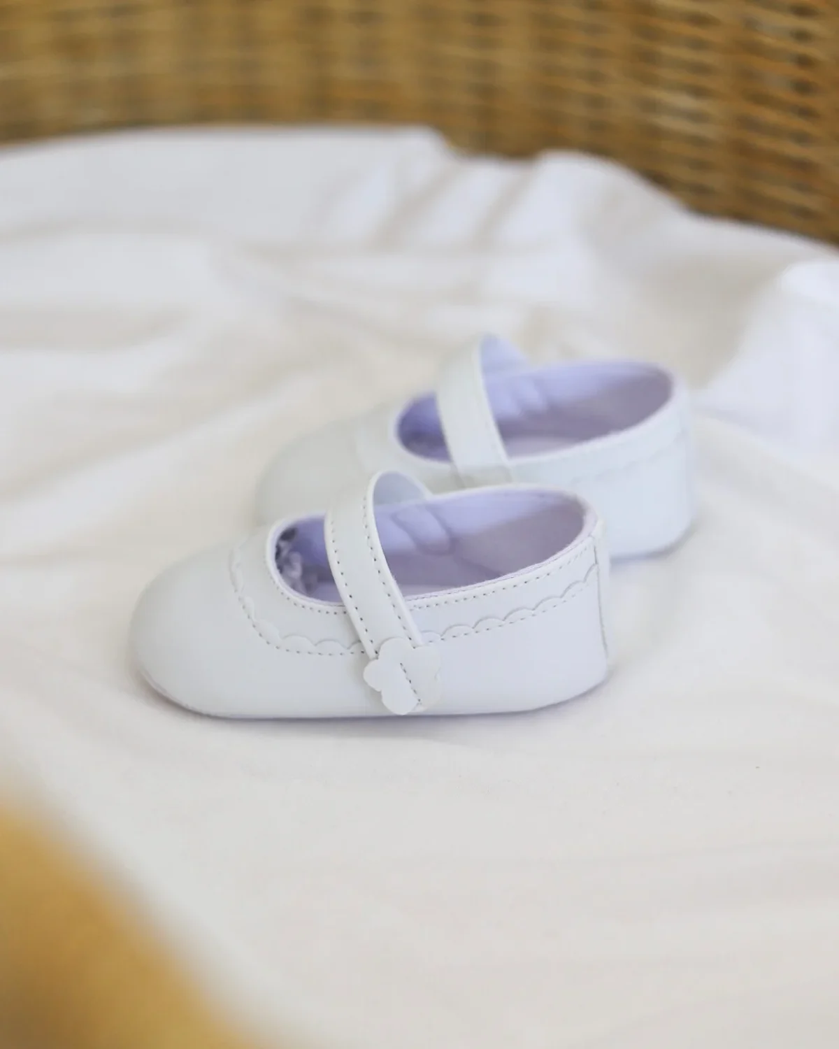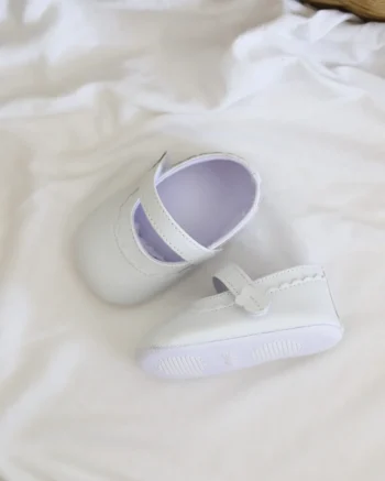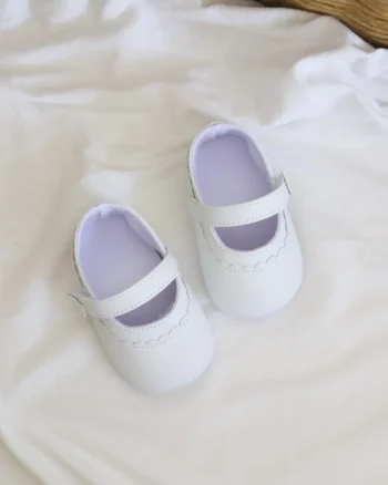 Klasične bele nehodajuće baletanke, sjajne su za kombinovanje uz razne haljinice! Kopčaju se pomoću kaiša sa čičkom, a imaju đon koji je mekan, potpuno savitljiv i ne opterećuje bebina stopala.