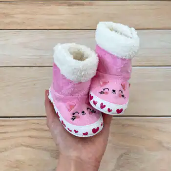 Nehodajuće Pattini čizmice za bebe devojčice, u „Maca“ dezenu. Futrovane toplom postavom!