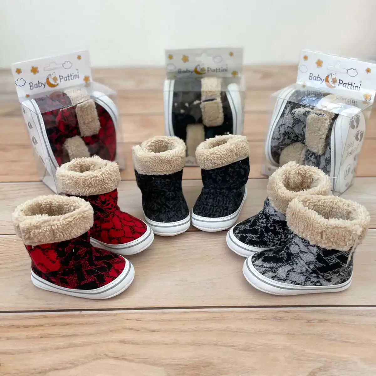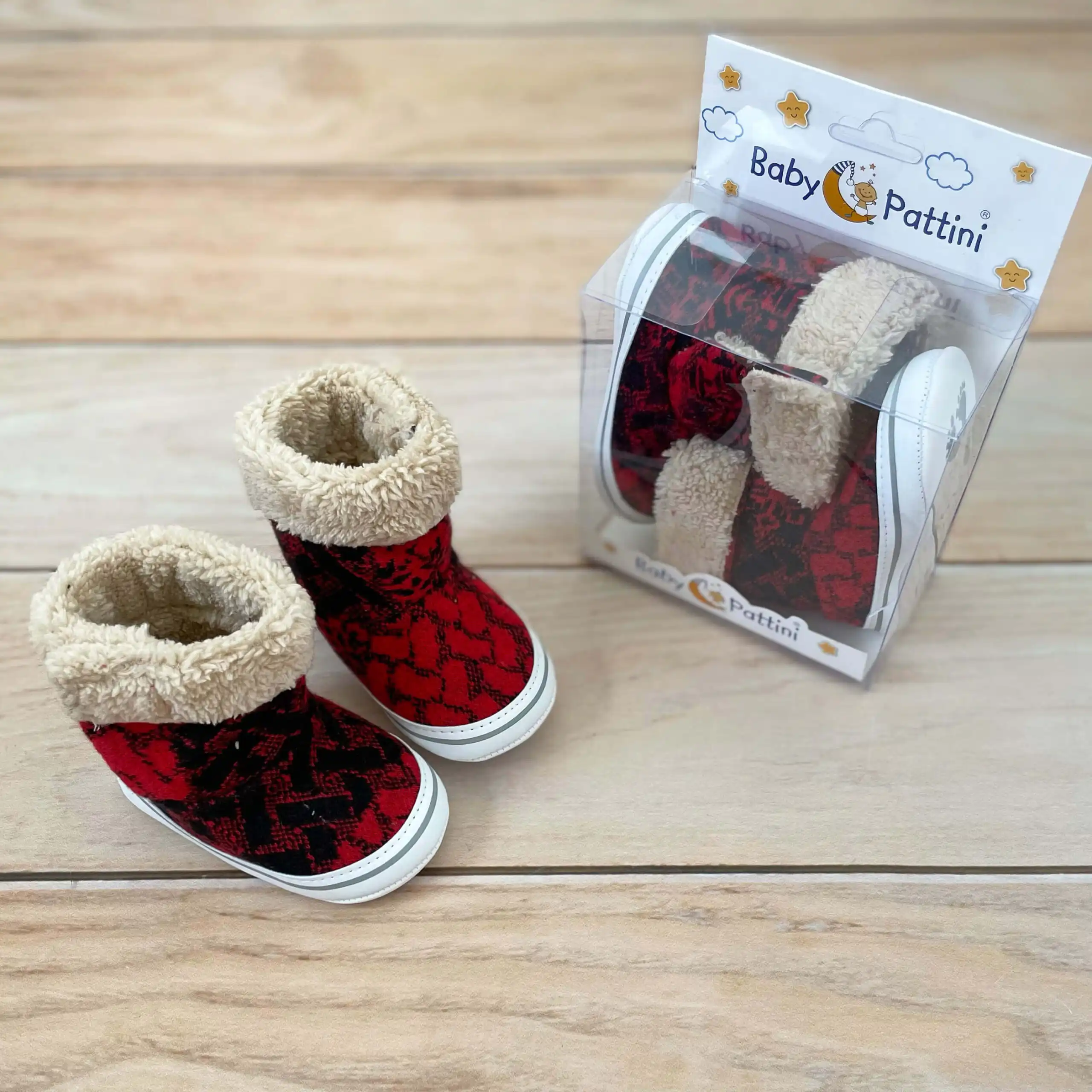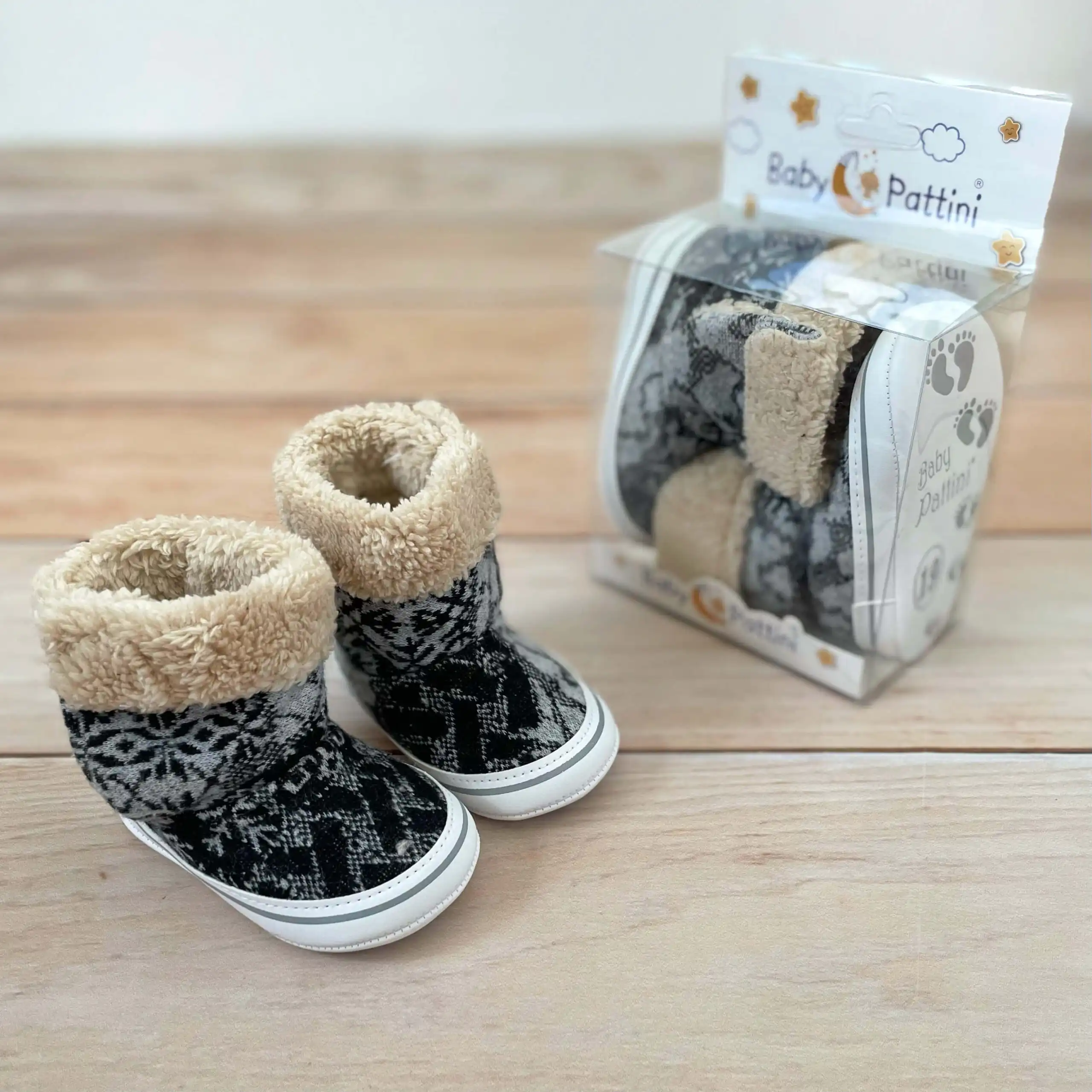 Nehodajuće Pattini pletene čizmice za bebe, futrovane iznutra! Sa zimskim šarama.