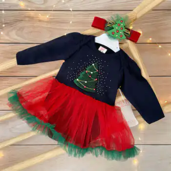 Novogodišnji „Christmas Tree“ kompletić, sa bodi-haljinicom i trakom za kosu!