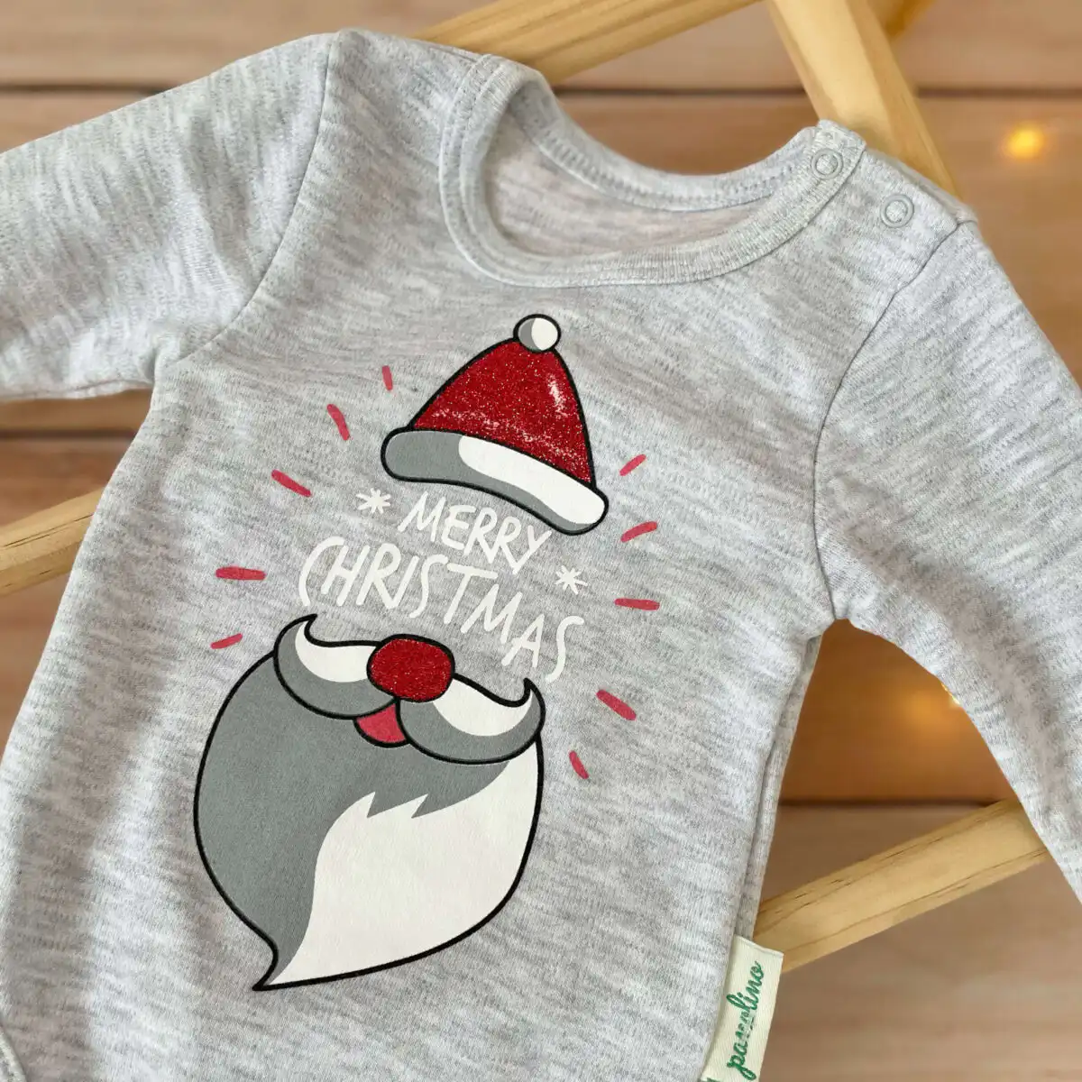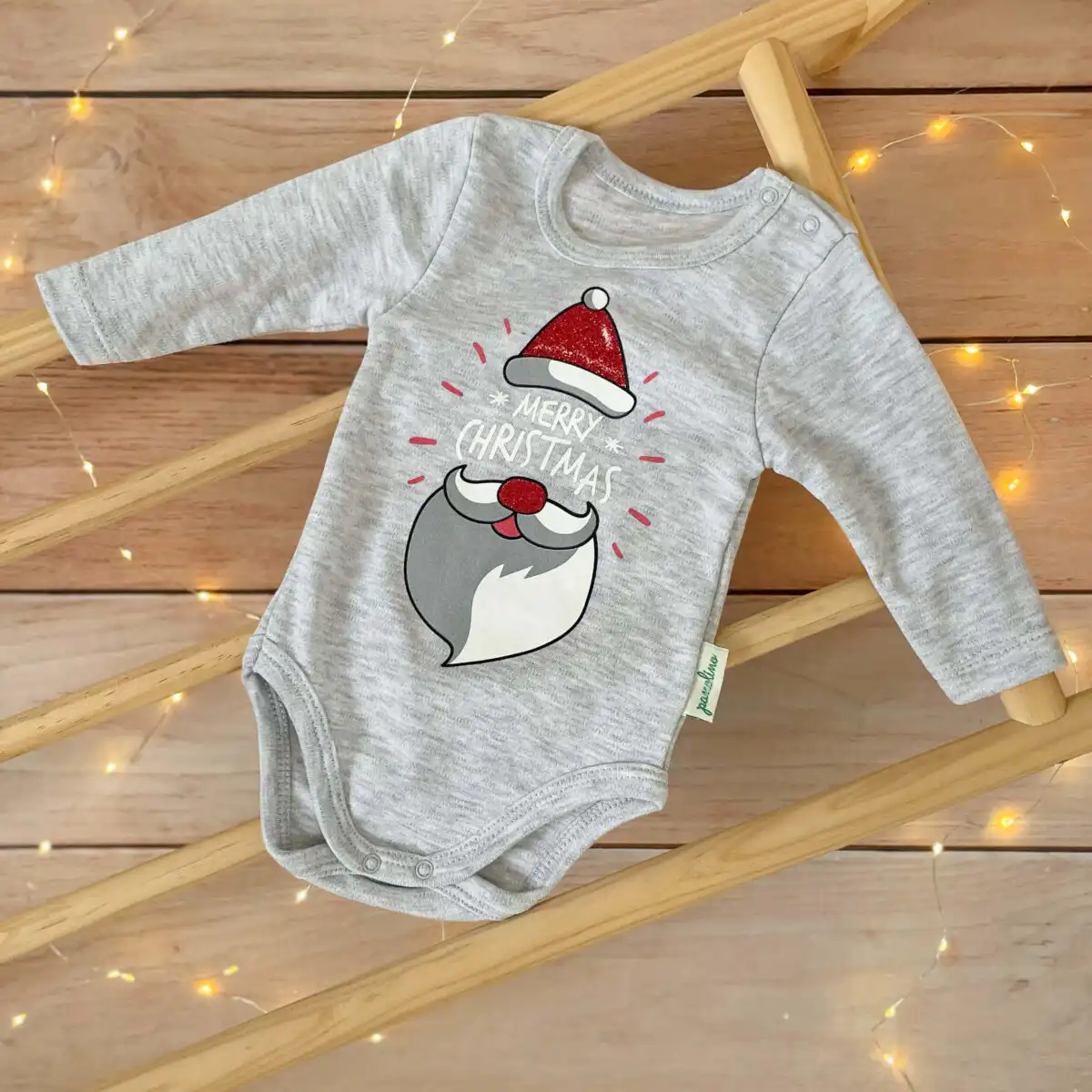 Pamučni bodi Panolino „Deda Mraz“ (sivi). Sa svetlucavim detaljima.