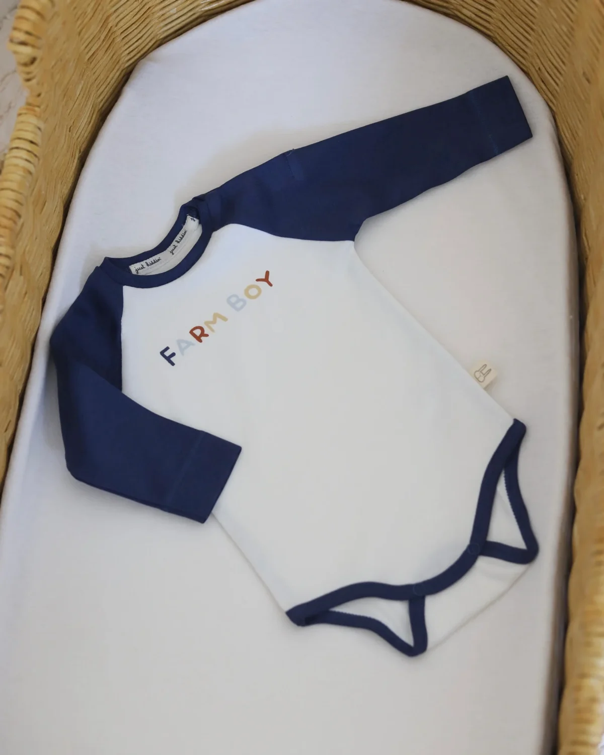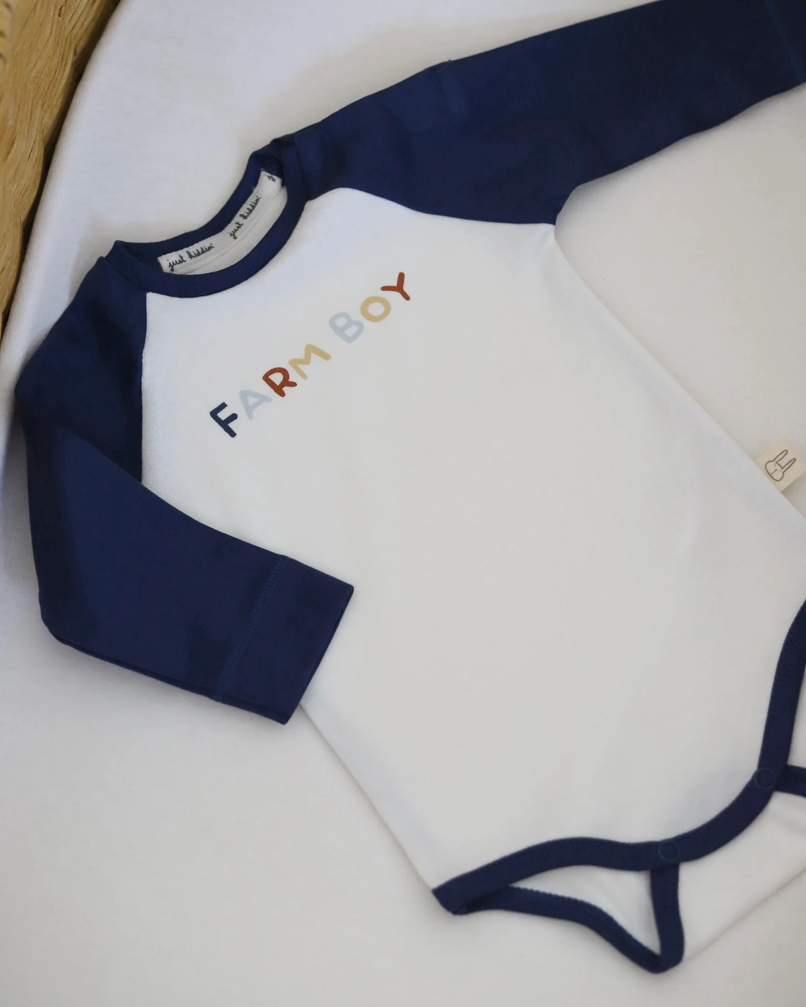 Just Kiddin’ FarmBoy bodi u teget/beloj kombinaciji, iz ORGANIC kolekcije, jedan je od onih komada za bebu koji koristiš svaki dan, i za boravak u kući, ali i van nje!