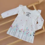 Tunika/haljina za bebe devojčice sa cvetićima, leptirićima i natpisom „A day with Mom“. Na duge rukave, raskopčava se celom dužinom na drikere, na leđima.