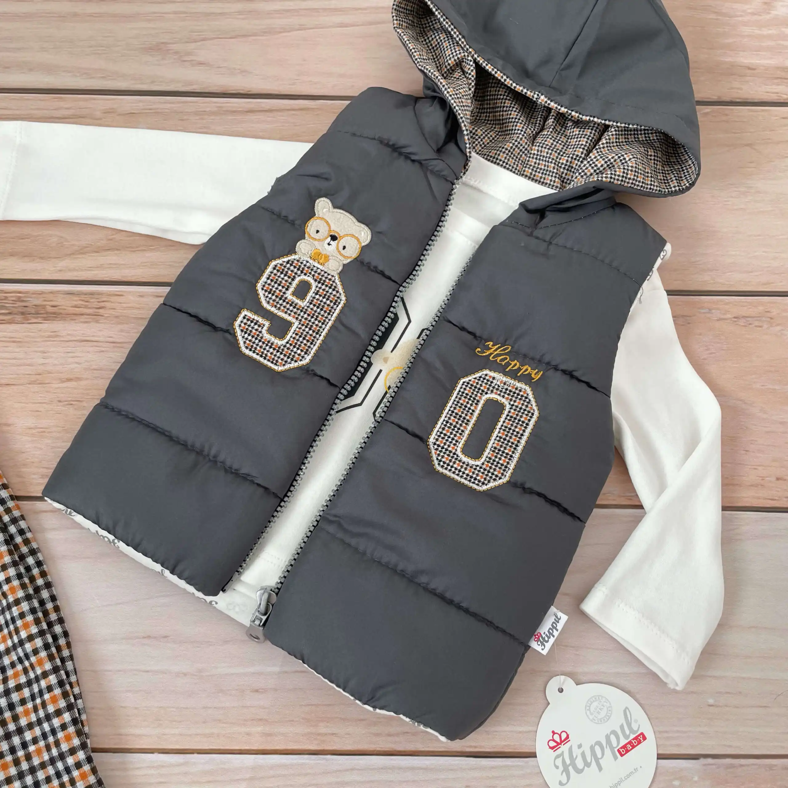 Prsluk iznutra takođe ima pamučnu postavu. Pantalonice su u kariranom dezenu, kao i postava u kapuljači. Nogavice su duge i imaju ranflu!