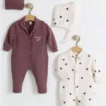 Kompletić modernog dizajna, od najmekšeg 100% pamuka, sa sistemom vrlo lakog oblačenja – u jednom. Praktičan za svaki dan, za posebne prilike i za najslađe fotografije naših mališana. U neutralnoj boji, za dečake i devojčice.