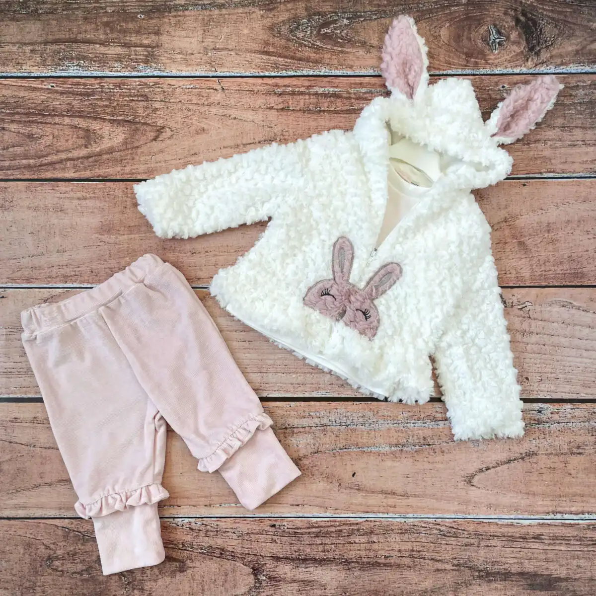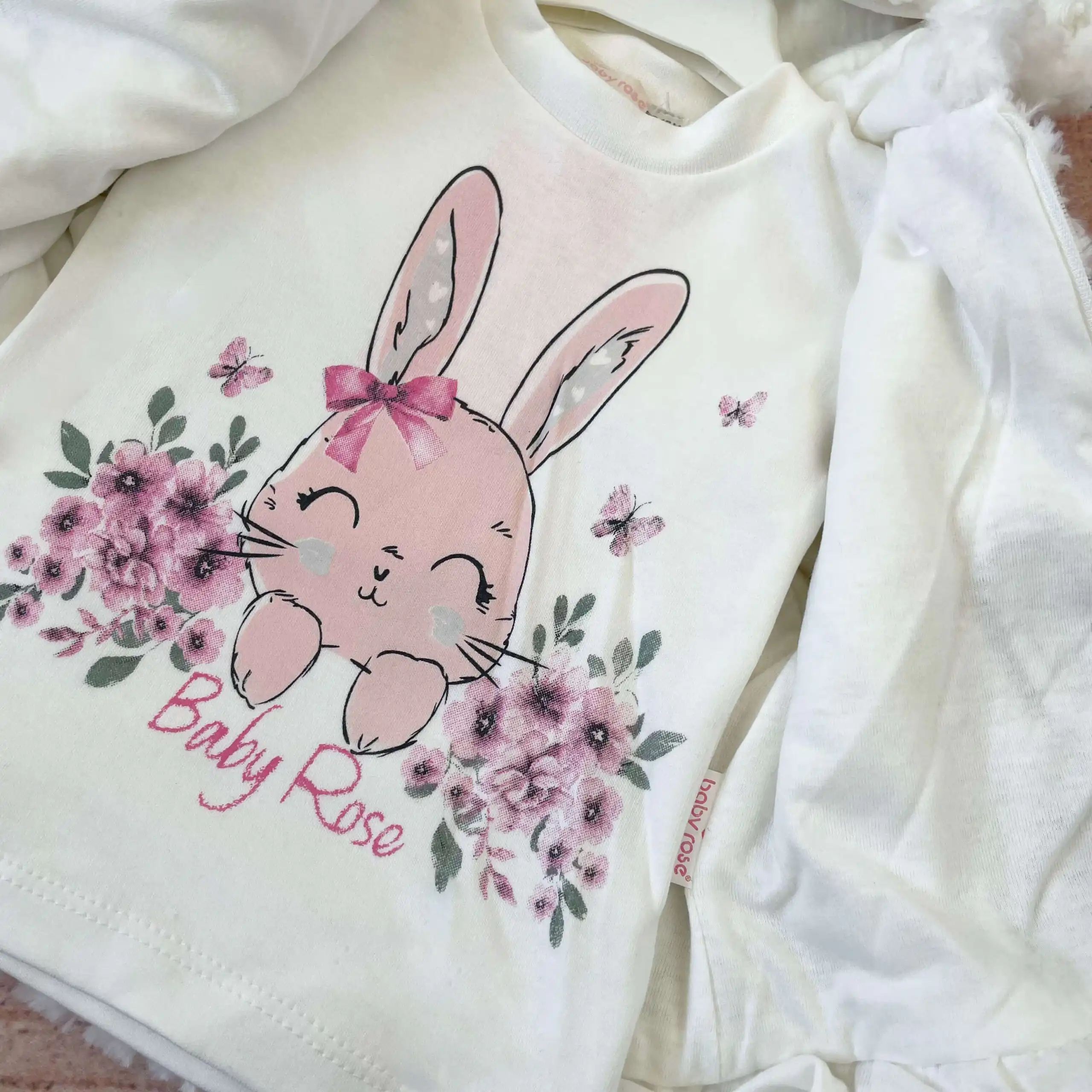 Kompletić sa bundicom BabyRose „Zeka“. U kombinaciji bele i svetlo roze boje.