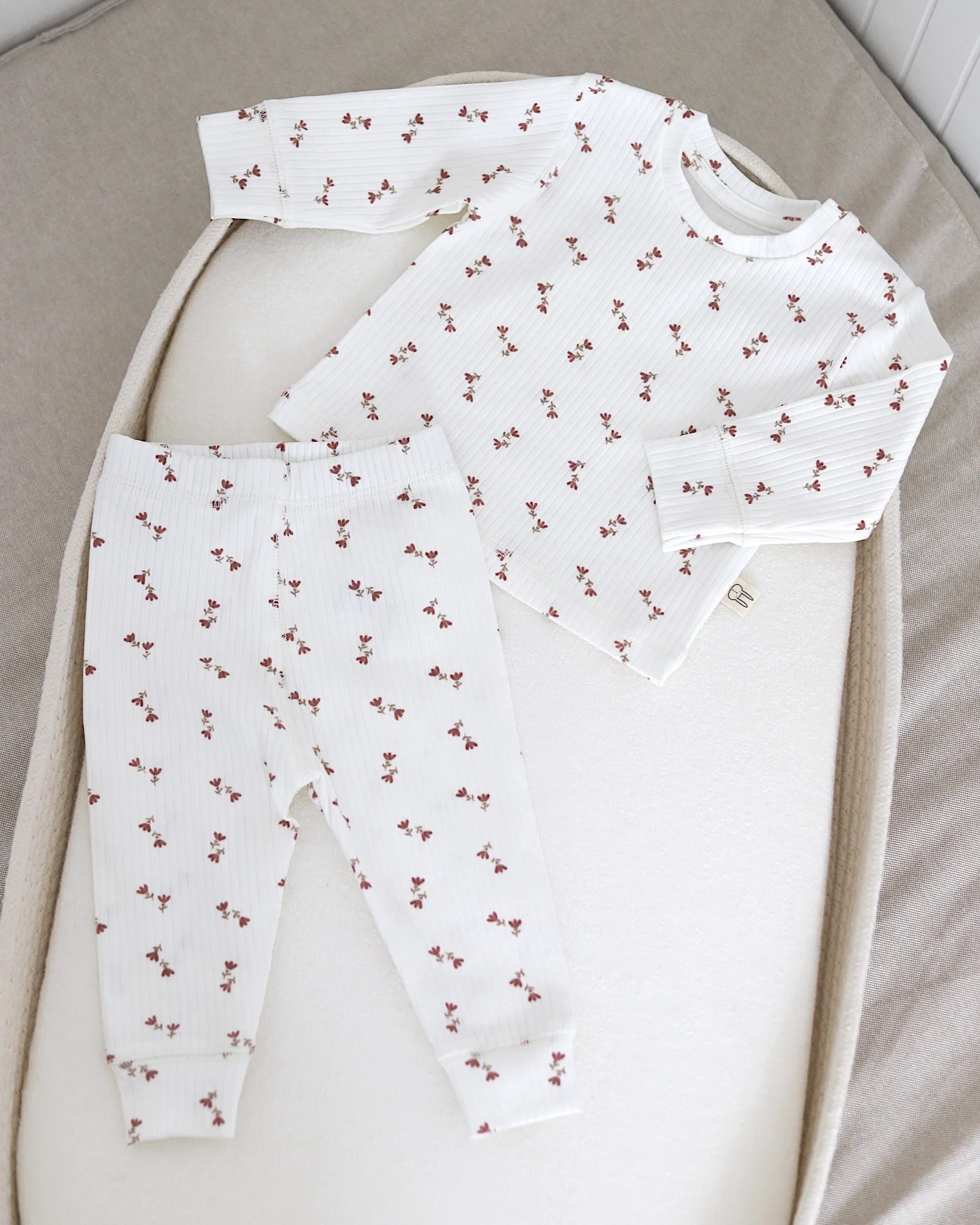 Just Kiddin’ dvodelna pidžamica na dug rukav, izrađena je od nežnog pamuka koji se oblikuje prema telu. Idealna za prelazni period, ali i za zimu i noći u toplim kućama/stanovima. U beloj boji, sa roze cvetovima.