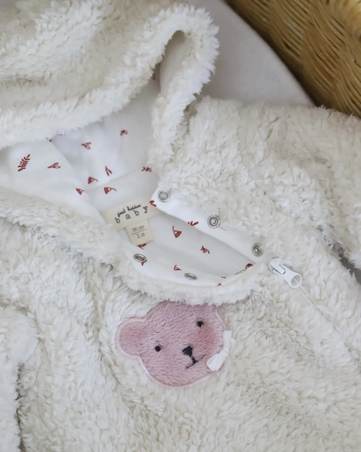 Mekani beli skafander sa roze medom, iz nove Just Kiddin kolekcije, sjajan je za sve zimske dane!
