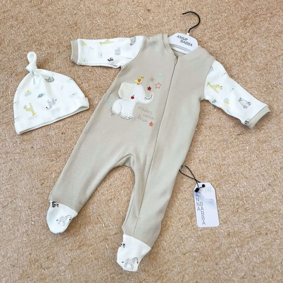 I štramplica i kapica izrađeni su od nežnog 100% pamuka, koji je sinonim firme Anna Babba!