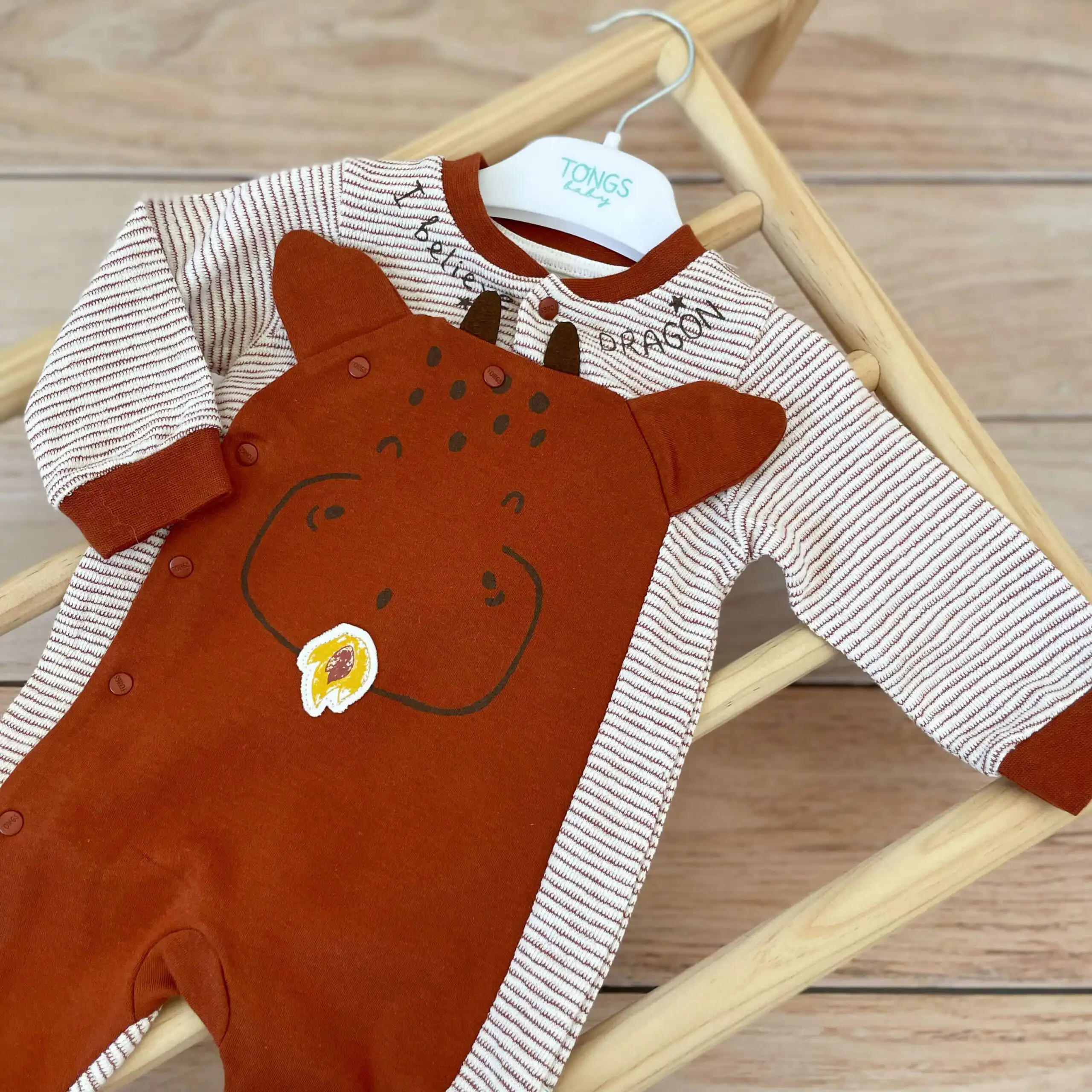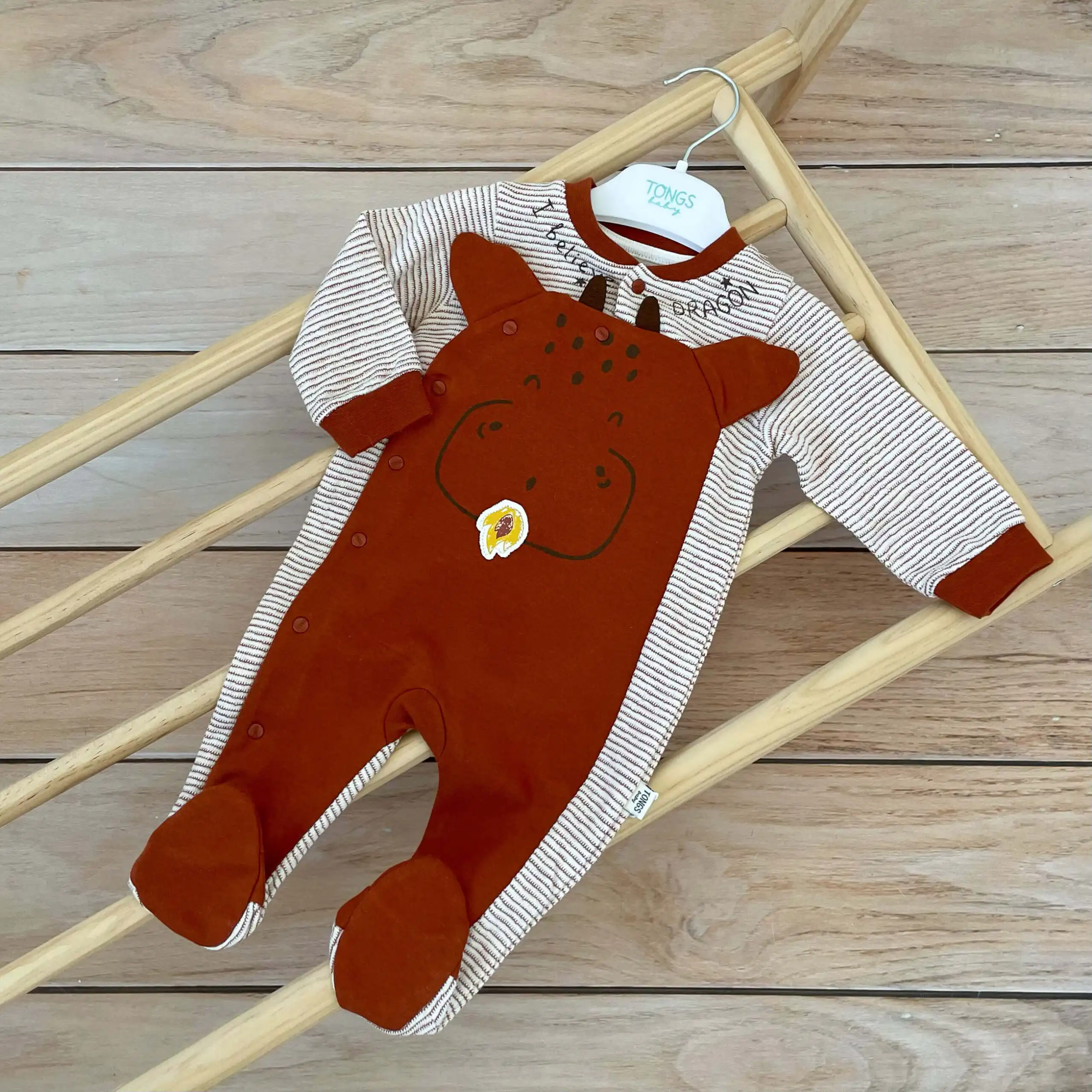 Tongs „Dragon“ štramplica za bebe dečake. Sa stopicama i kosim kopčanjem! U boji cigle.