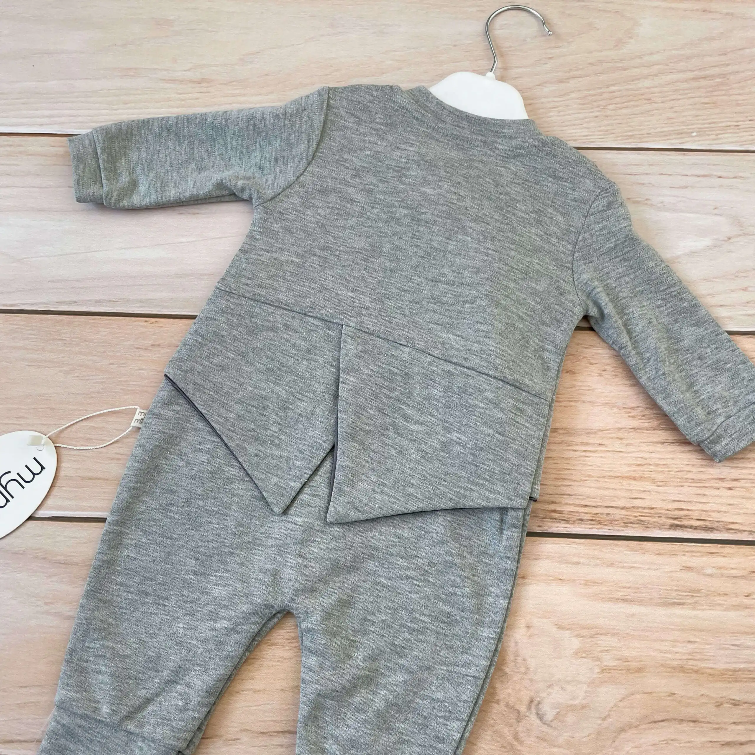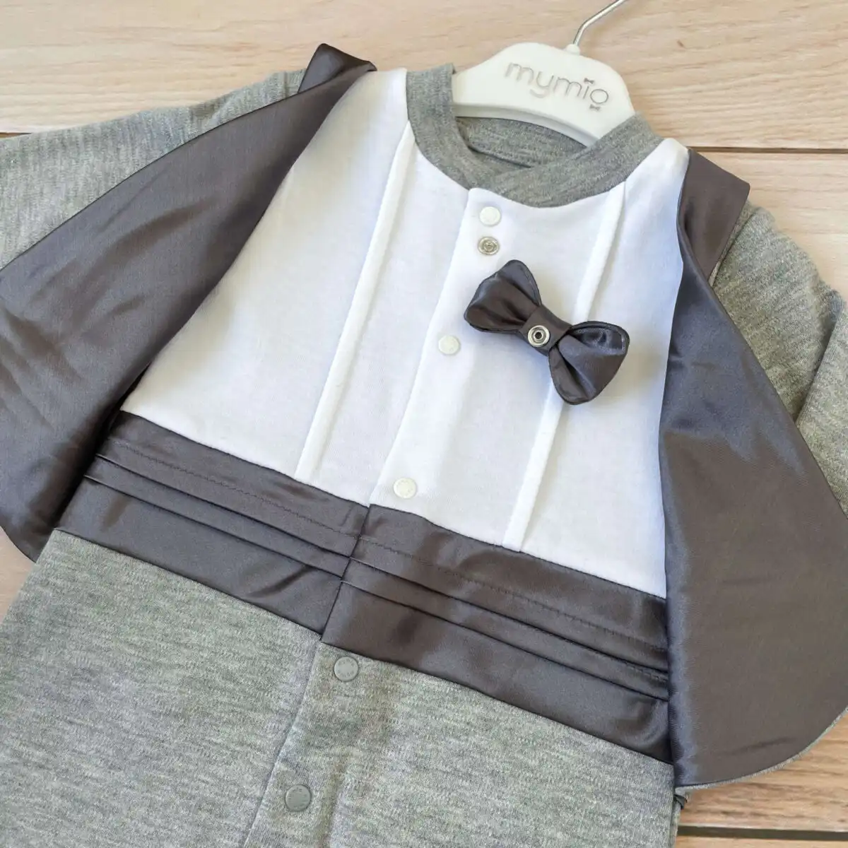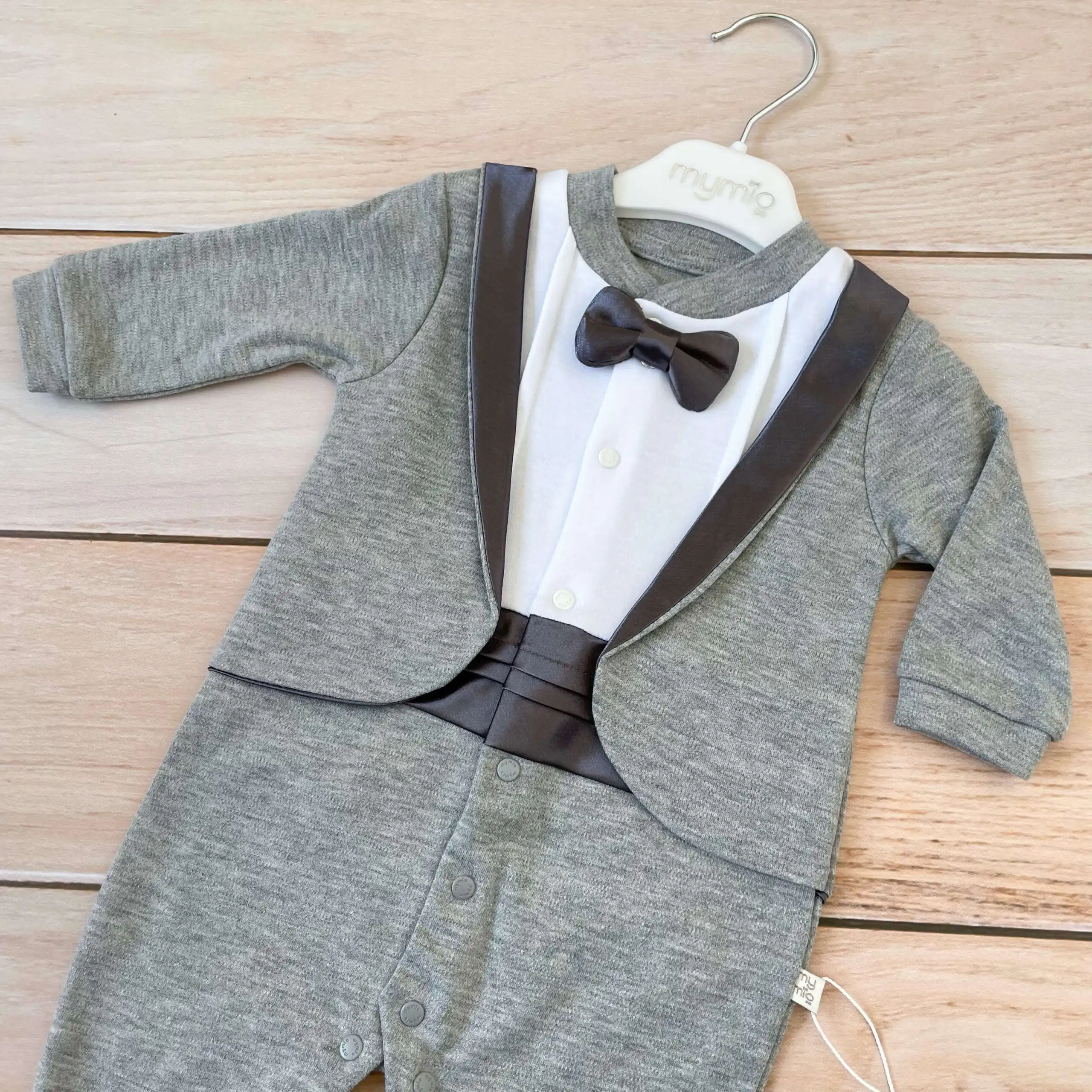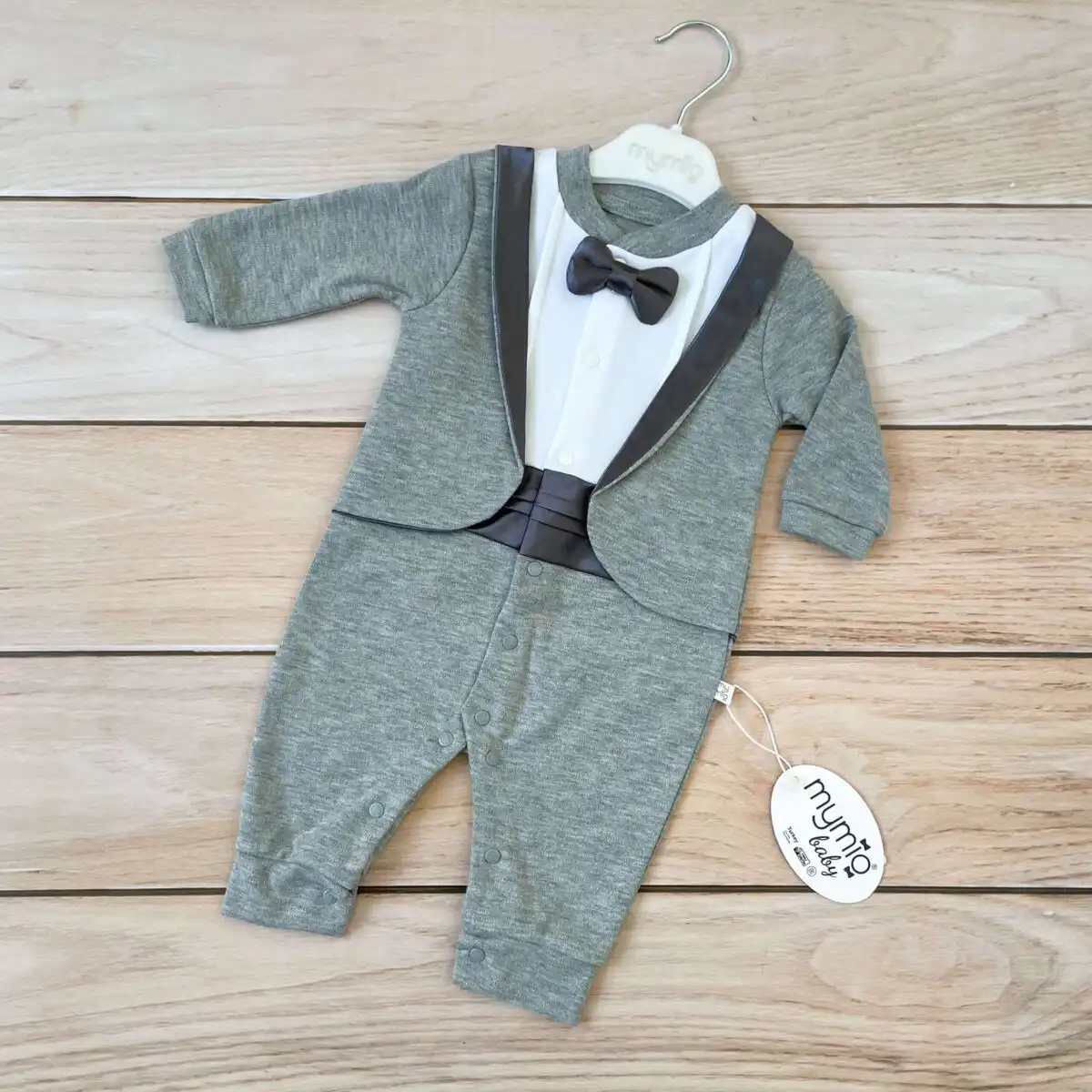 Zeka za bebe dečake, sa leptir mašnom. Raskopčava se celom dužinom, i između nogica, na drikere. U sivoj boji!